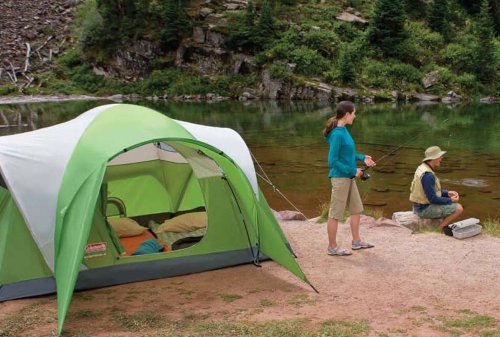 Comfort Outdoor Living with All-Weather Protection: Ideal for family car camping and shorter backpacking trips, the Montana tent features an 9 by 7-foot footprint providing ample room for 4 adults to stretch out completely. Designed for a perfect combination of weather protection and ventilation, the Montana has a large rain fly with an extended overhang and fly pole wings that both keep water away from the tent and provide protected outdoor space. Coleman's exclusive WeatherTec System is guaranteed to keep you dry, not matter what the weather, and the Variflo adjustable ventilation system allows you to control airflow. Equipped with a vented Cool-Air port, a privacy vent window, reverse angle windows, and a large entry door, it is easy to adjust the airflow to suit your needs. With an interior gear pocket and an electrical access port you can keep your belongings organized and accessible, and bring electricity into the tent without having to open one of the doors or windows.