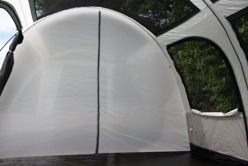 Nice tent I was incredibly surprised by this product, and only one complaint. This tent is really big and could fit several people. There are two doors, not one as pictured. The doors are on either side of the tent - able to do "walk-through". The windows are huge and really nice in the hot summer. We weren't planning on putting the rain cover on, but in the early morning, the tent collected dew which then ended up dripping on us at early morning. Because we had very limited space at the music festival we set up, the car had to be right up on the tent. We realized the "vents" need to be placed as far out as possible - which we didn't do because of the car. On our last two nights, it rained all the time, and the car hood drained into the vent, which then got into the tent. By morning, we saw a reasonably sized pool of water on the car side of the tent (the vent on the other side didn't give us any problems). Long story short, great big tent with great air flow, be careful in high winds...